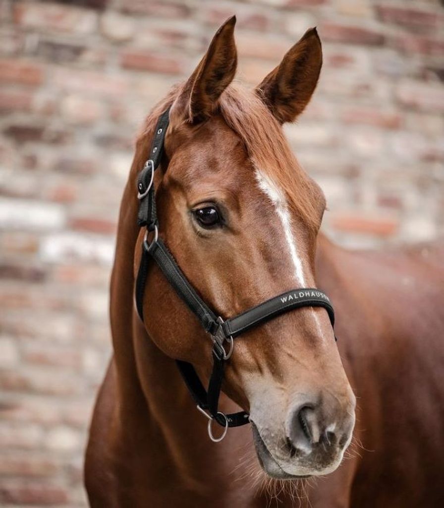 Högkvalitativ grimma från Waldhausen. Mjuk vaddering på nacke, nos och sidostycken för extra komfort. Det anatomiskt utformade nackstycket ger en behaglig passform för hästen.