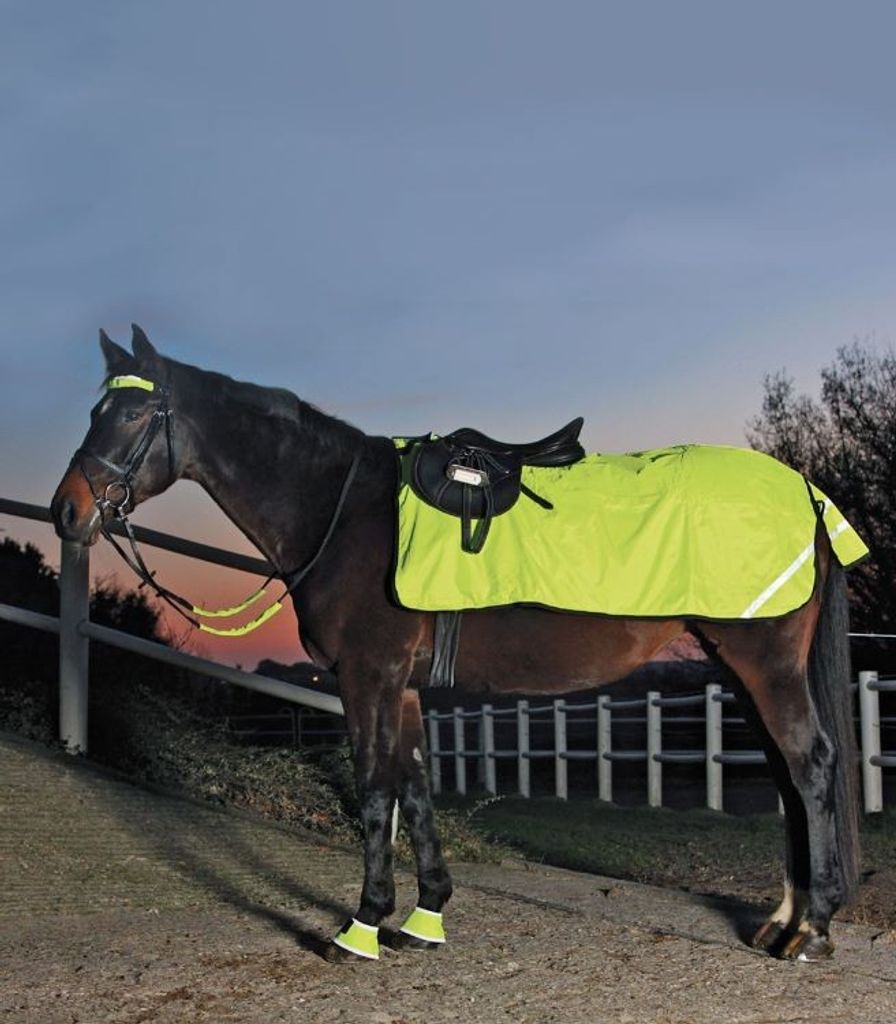 HI-VIZ-produkter för hästar och ryttare är utformade för att öka säkerheten vid dålig sikt, såsom i mörker eller dimma, och ser till att både häst och ryttare syns tydligt på kvällarna.