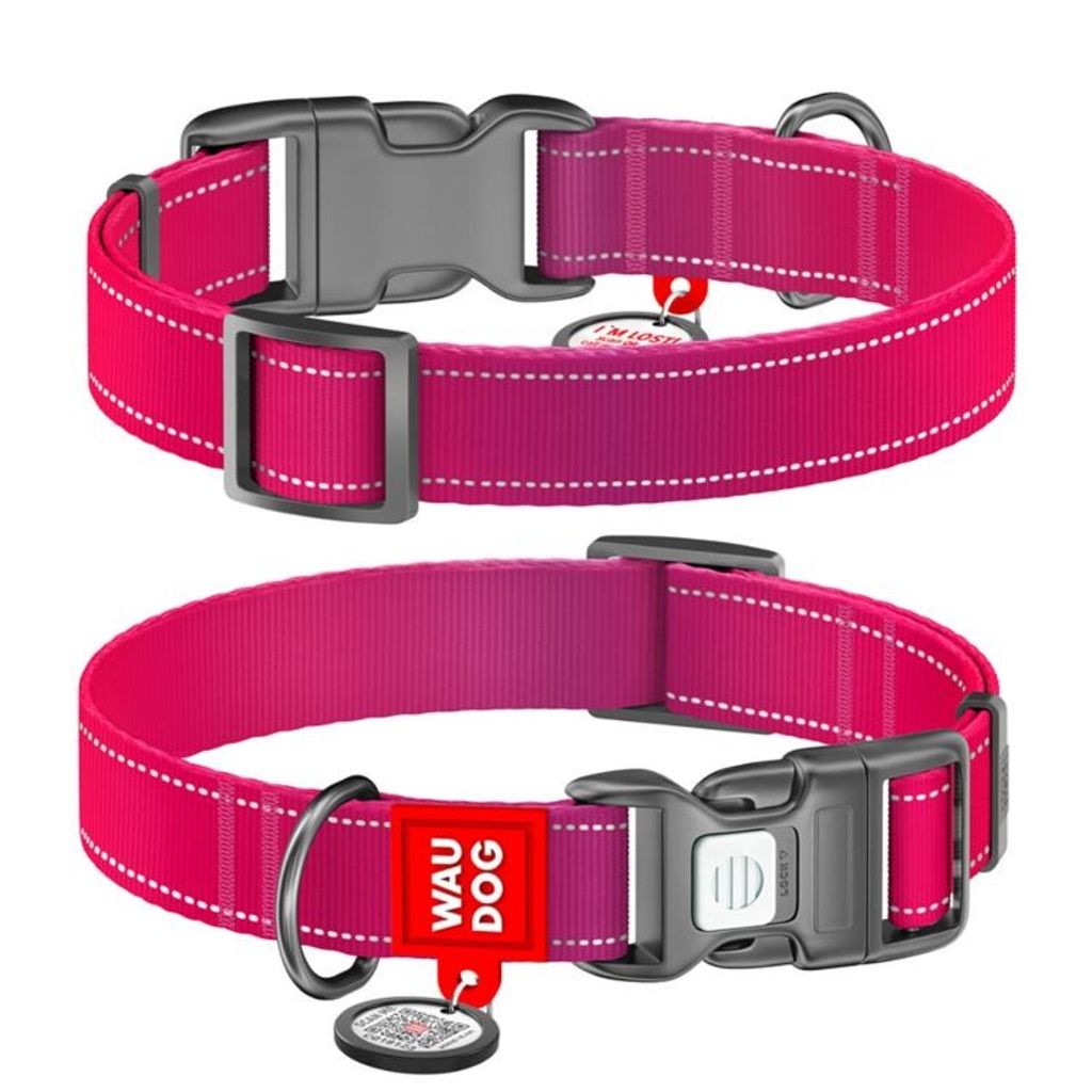 WAUDOG Mono Hundhalsband Reflex med Smart-ID bricka Rosa