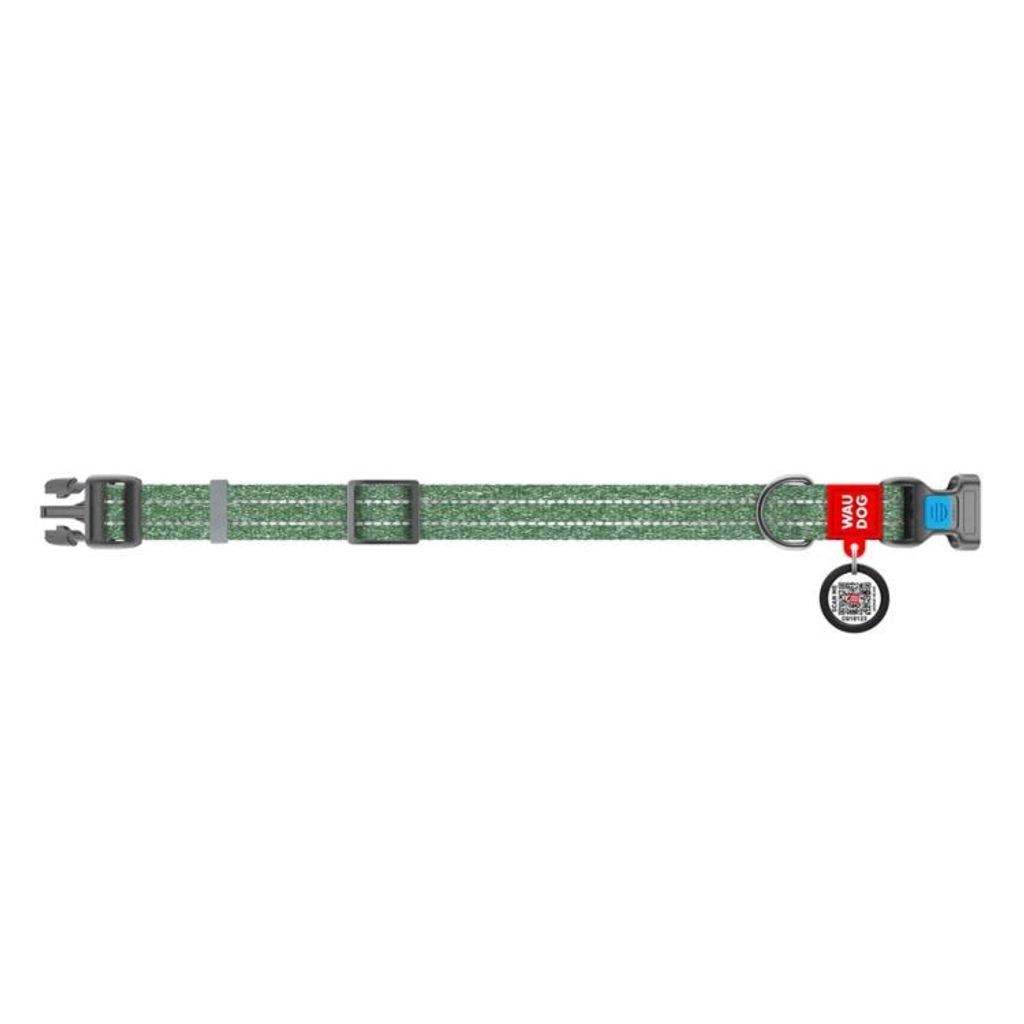 Beskrivning av WAUDOG Re-Cotton Hundhalsband med Smart ID-Bricka Reflex, Grön