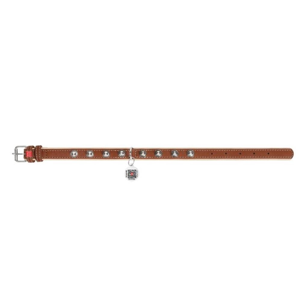 WAUDOG Soft Läderhalsband med Nitar Smart-ID Bricka, Brun
