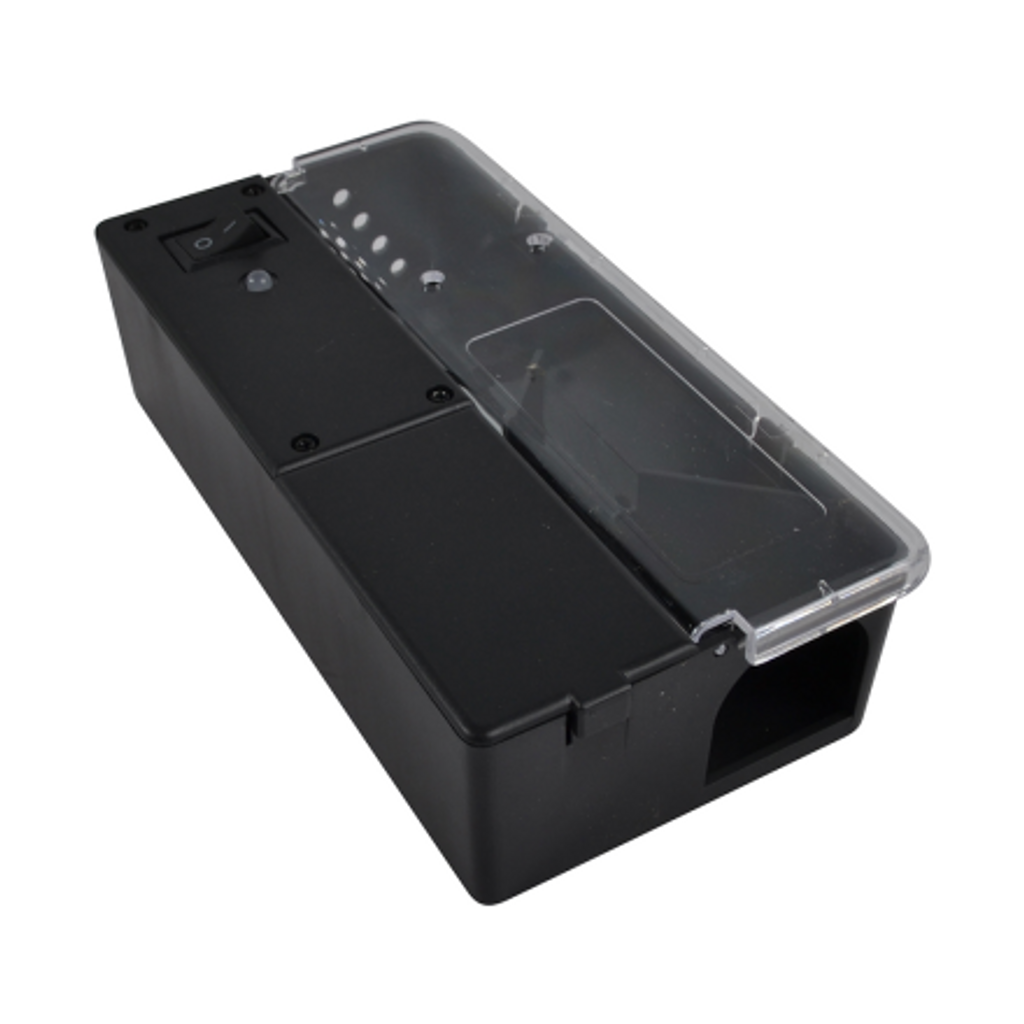 Effektiv musfälla utrustad med lysdiod för indikering av fångst. Elektrisk musfälla för användning inomhus. Har ett transparent lock.