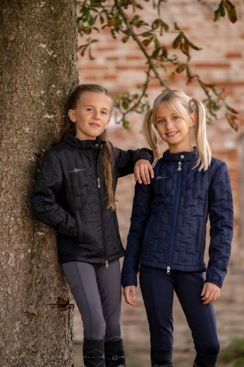 Denna barnjacka kombinerar sportig design med lättviktig komfort, och är perfekt för aktiva dagar. Passar lika bra som ridjacka som en jacka för en dag i stallet eller i resten av vardagen. Materialblandningen av mikrofiber och kviltat tyg gör den både andningsbar och funktionell. Jackan har två handvärmarfickor med dragkedjor och en ståkrage med knapp för extra skydd.
