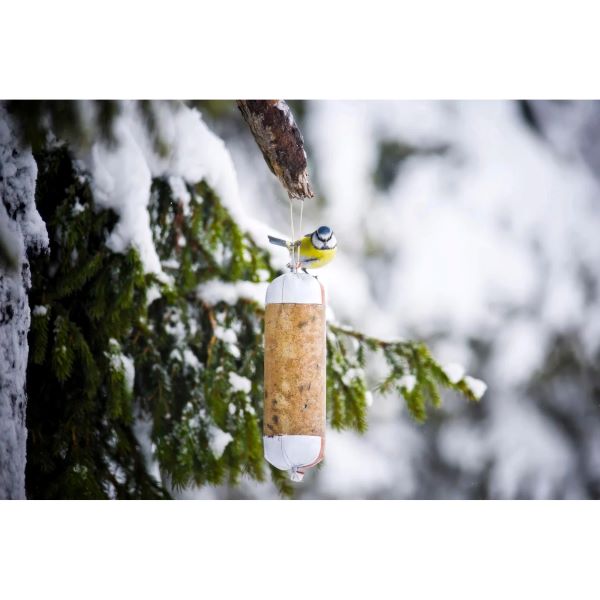 Denna innovativa förpackning är dessutom bättre för fåglarna än traditionella talgbollar med nät. Detta då fåglarna kan få i sig plastbitar eller fastna i nätet.