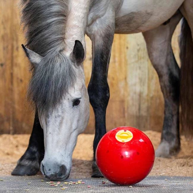 Snak-A-Ball är en otroligt slitstark och tålig leksak för hästar. Fyll din hästs Snak-A-Ball med pellets eller små hästgodisar och se när din häst får klura ut hur den får ut det goda.