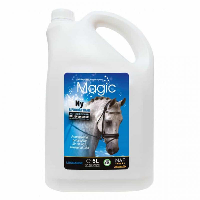 Det finns inga magiska tricks bakom Magic, utan enbart sund vetenskaplig och veterinärmedicinsk kunskap, kombinerat med ingredienser av högsta kvalité. Magnesium är ett livsviktigt näringsämne för hästens välbefinnande och stödjer bland annat regleringen av nervösa spänningar. Eftersom magnesium också har inverkan på muskelspänning, kan en häst som har låga värden av magnesium se kort ut i sitt rörelsemönster och uttrycka oro, lättretlighet och dåligt självförtroende. Magic är mer än bara magnesium; den innehåller också en blandning av örter utvalda för deras traditionella användning som stöd för självförtroende och koncentration. Den unika blandningen av magnesium och örtbaserat stöd i Magic gör det möjligt för hästen att utföra allt som begärs av den, ge ett lugn och