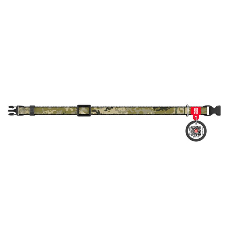 Kamouflagemönstrat halsband från WAUDOG som är både bekvämt för ditt djur att bära, samtidigt som det är hållbart och klarar daglig användning utan problem.