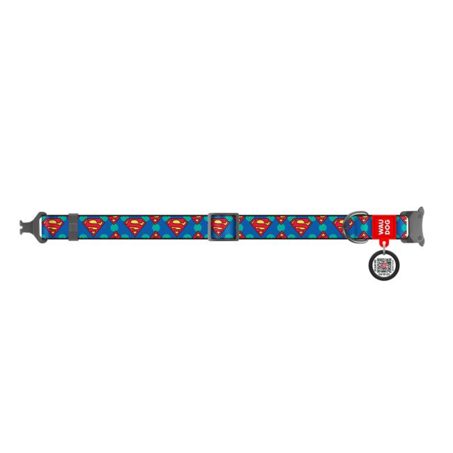 Hundhalsband med Smart ID bricka. Förvandla din hund till en hjälte med detta snygga Superman-mönster.